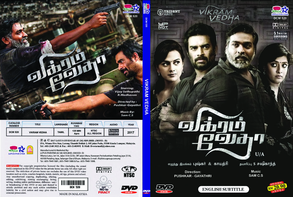 The classic Indian story of King Vikram and Vedhalam brings you into the life of police inspector Vikram (R. Madhavan), who is brave, honest and draconian about right and wrong. He and his colleague Simon (Prem) are part of an 'encounter' unit led by the latter, formed to eliminate the dreaded crime lord Vedha (Vijay Sethupathi). Tipped off by an informant, they storm into an abandoned house and kill few gangsters. When the newest Constable of Police, Santhanam (Manikandan) is nervous about this, Vikram calms him by saying that he sleeps peacefully at night despite the encounters because he knew that the men they shot were criminals, not innocents. The unit makes plans for another raid when, Vedha walks into the police station and surrenders.